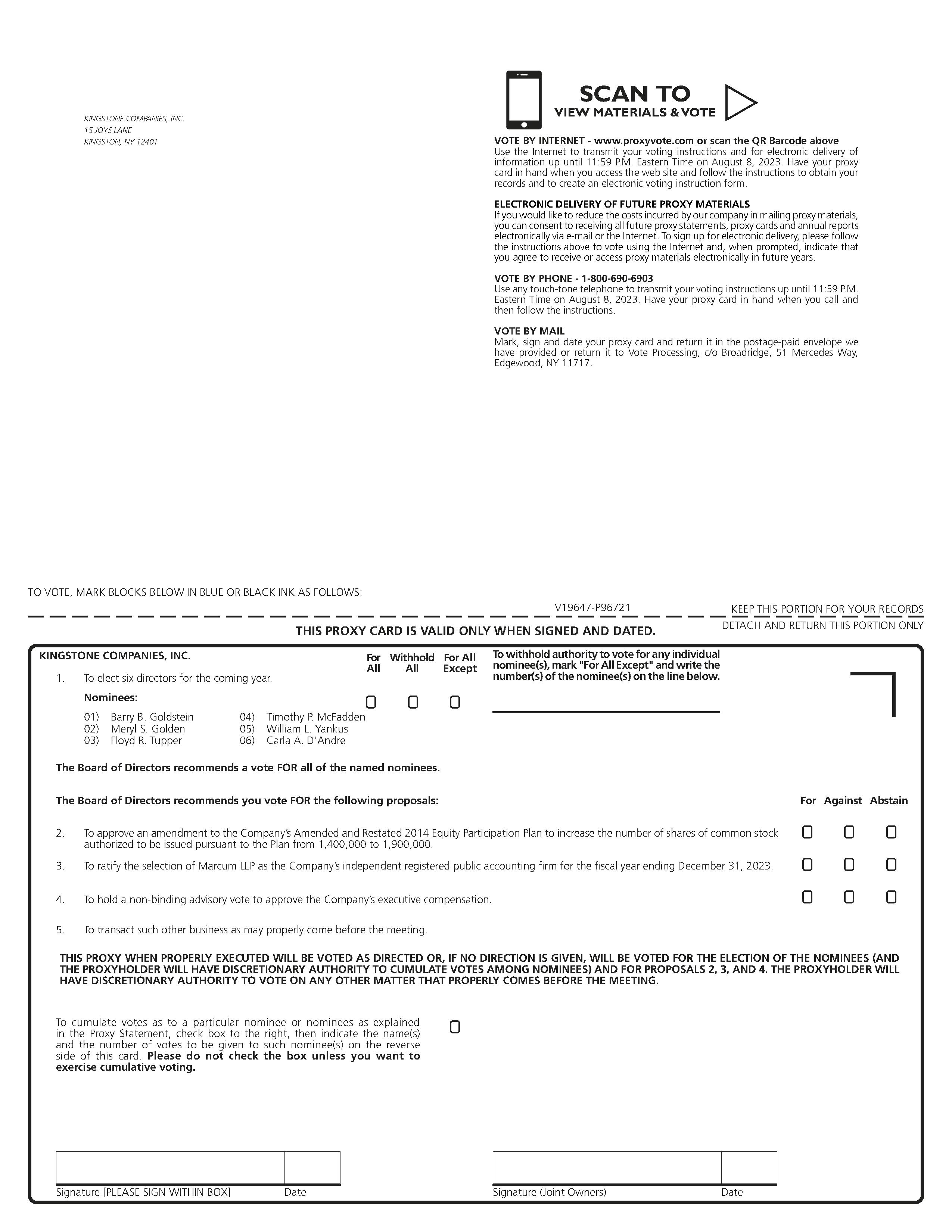 INTERNET OR BY TELEPHONE MAY ALSO REVOKE THEIR PROXY BY VOTING IN PERSON AT THE MEETING OR BY VOTING AND SUBMITTING THEIR PROXY AT A LATER TIME BY INTERNET OR BY TELEPHONE.