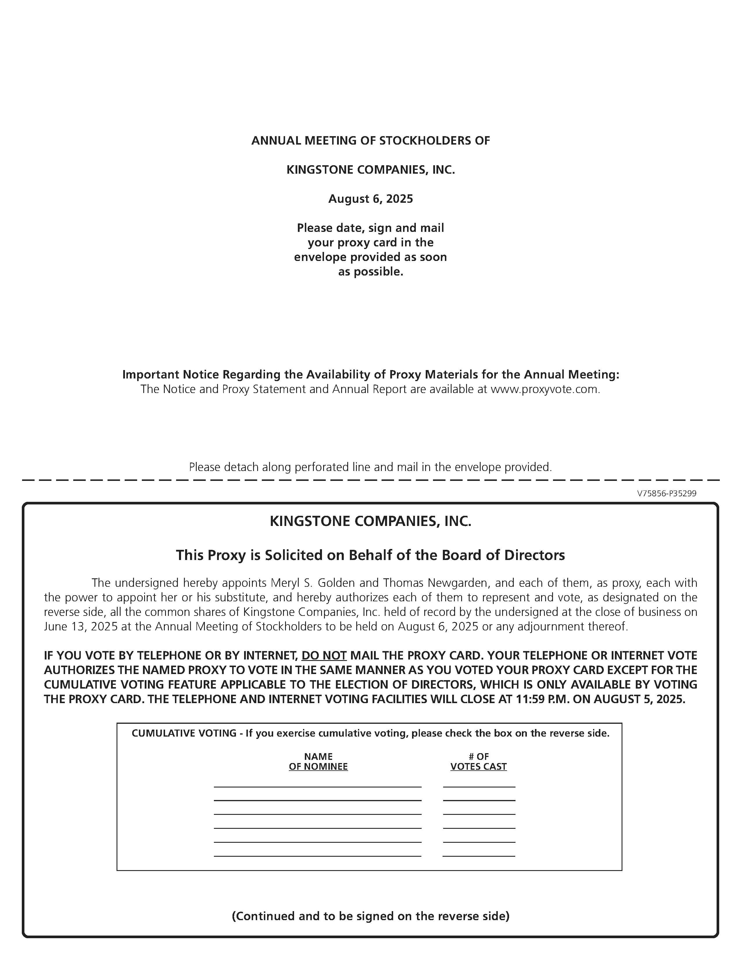 VOTING BY INTERNET OR BY TELEPHONE MAY ALSO REVOKE THEIR PROXY BY VOTING ONLINE AT THE MEETING OR BY VOTING AND SUBMITTING THEIR PROXY AT A LATER TIME BY INTERNET OR BY TELEPHONE.