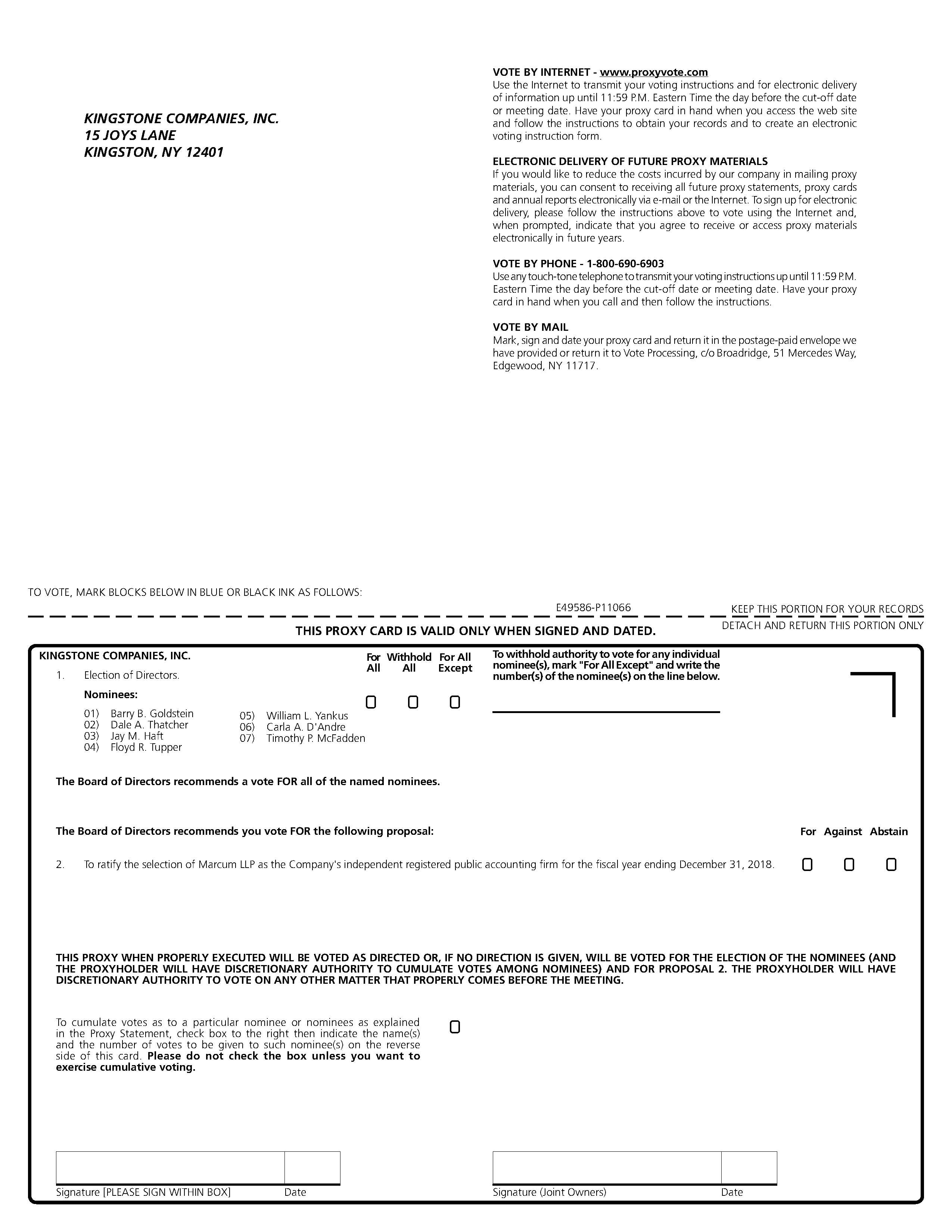 To the Stockholders of Kingstone Companies, Inc.: