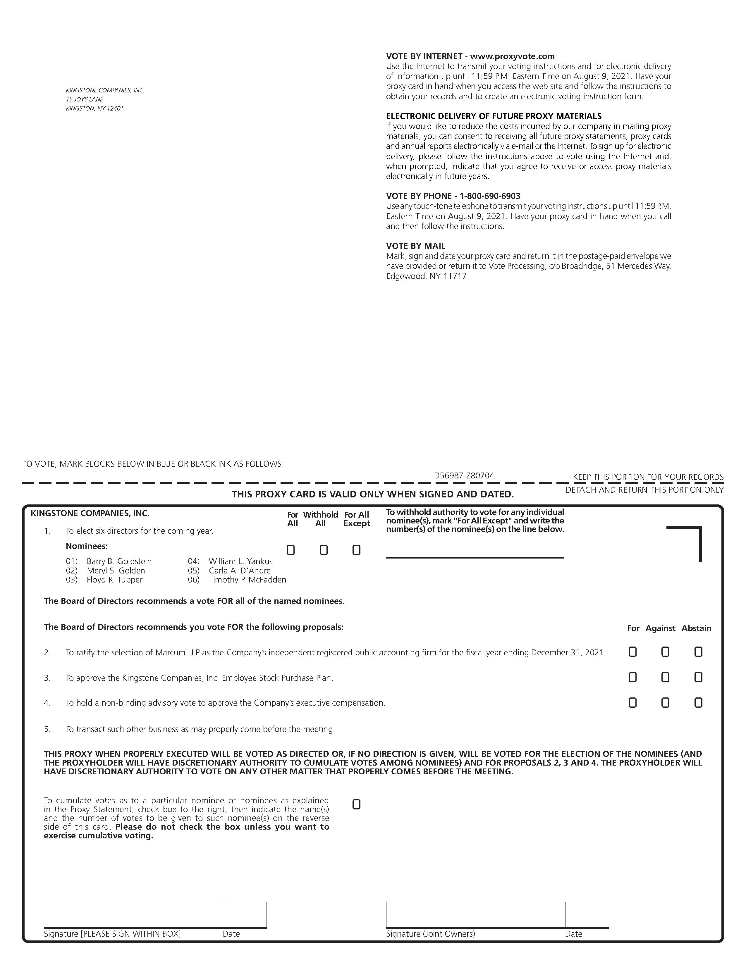 To the Stockholders of Kingstone Companies, Inc.:
